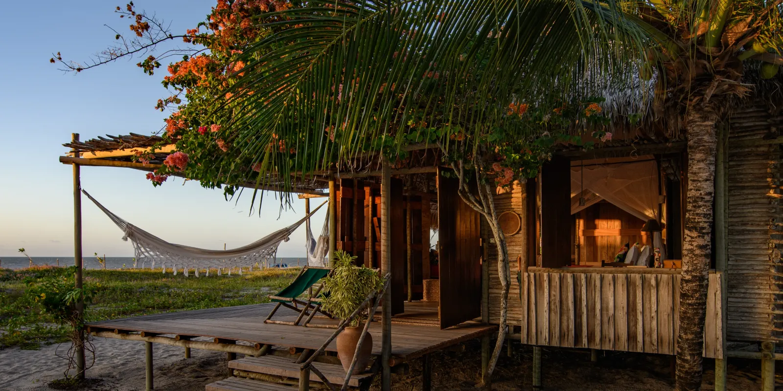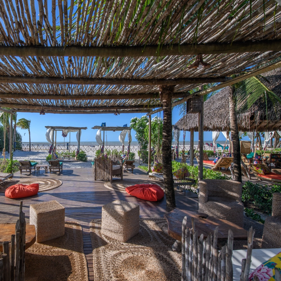 Situado em uma área de mais de 60 mil metros quadrados, o Rancho é a materialização de uma filosofia eco consciente. Apenas 14% do terreno é ocupado por construções. Os bangalôs de 80 m² são feitos com materiais locais e projetados para que o vento circule naturalmente, dispensando o ar-condicionado e reduzindo o consumo de energia. As redes nas varandas convidam à contemplação e ao relaxamento, criando um refúgio perfeito para quem busca se conectar completamente com a natureza.